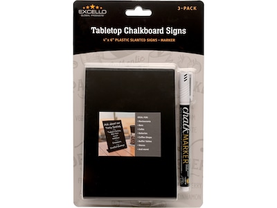 - Package contains: three plastic tabletop signs, white liquid chalk marker