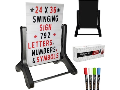 Make your message stand out. This Excello Global Products swinging changeable message sign is perfect for promotional messages for restaurants, bars, cafes, businesses, stores, flea markets, farm stands, and special events. Made up of high-quality nonrusting parting. When sand or water is added to the legs, the sign will stay standing in all weather conditions and in winds exceeding 30 mph.