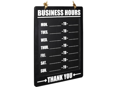 Excello Global Products Business Hours Indoor/Outdoor Hanging Chalkboard, 10" x 13.75", Black (EGP-HD-0311A-S)
