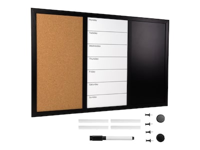 - Combination of a magnetic whiteboard, corkboard, and chalkboard will make organizing your agendas easier than ever