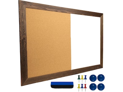 The Excello Global Products 24" x 36" dry-erase and cork board offers a high-quality wooden frame, four magnets, pushpins, and one eraser. The board comes with preinstalled brackets at the back and can be mounted horizontally or vertically. With its rustic wooden frame, it will surely add some flair to your room. Offers an elegant and professional look and feel and is made of durable materials that are sturdy enough for long-term use. Excello Global Products is a family-owned USA company and has have been making quality products for over 50 years.