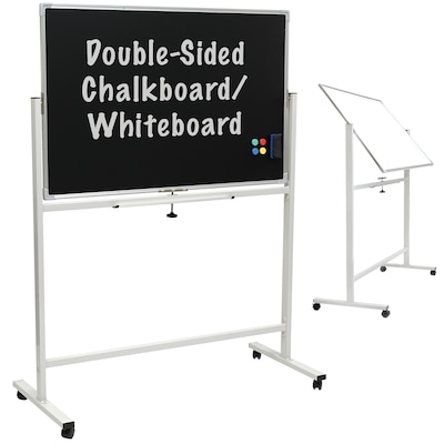 Excello Global Products Double Sided Magnetic Mobile Whiteboard Chalkboard Combo, White Frame, 48" x 32"