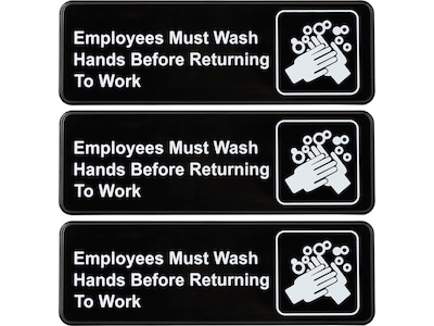 Excello Global Products Employees Must Wash Hands Indoor Wall Sign, 9" x 3", Black/White, 3/Pack (EGP-HD-0049-S)