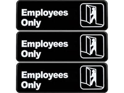 Excello Global Products Employees Only Indoor/Outdoor Wall Sign, 9" x 3", Black/White, 3/Pack (EGP-HD-0050-S)