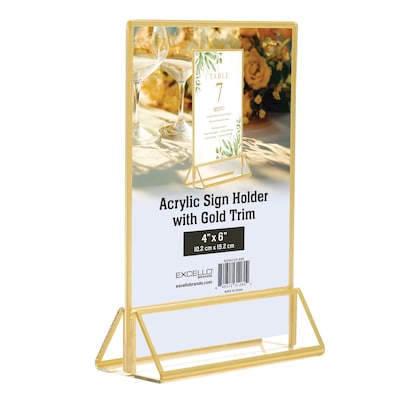 Excello Global Products Generic Holder, 4" x 6", Vertical, Desktop/Countertop, Gold Acrylic (SGNH-GT-4X6)