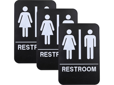 Excello Global Products Indoor/Outdoor Restroom Wall Sign with Braille Text, 6" x 9", Black/White, 3/Pack (EGP-HD-0275-S)