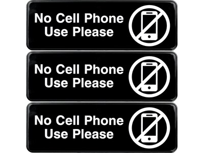 Excello Global Products No Cell Phone Use Please Indoor/Outdoor Wall Sign, 9" x 3", Black/White, 3/Pack (EGP-HD-0266)