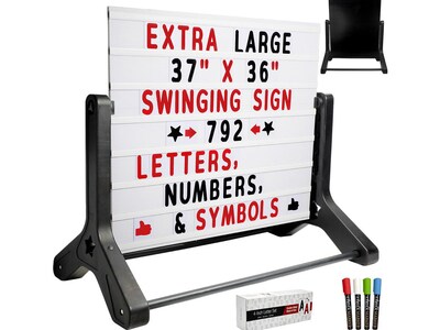 - Swinging sidewalk sign with letter set and liquid chalk markers to create any promotional message
