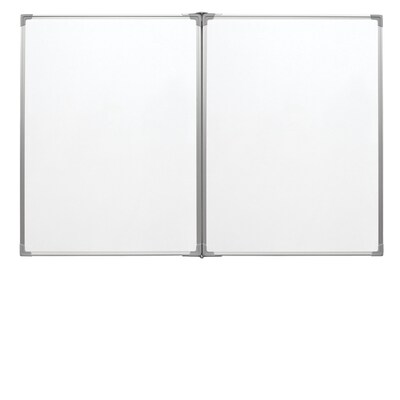 Designed with a center split panel, this 30" x 40" magnetic whiteboard offers three unique configurations, allowing you to use up to four separate writing surfaces. Each dry-erase surface is 30 inches wide and 40 inches tall, providing ample space for brainstorming, teaching, or planning.