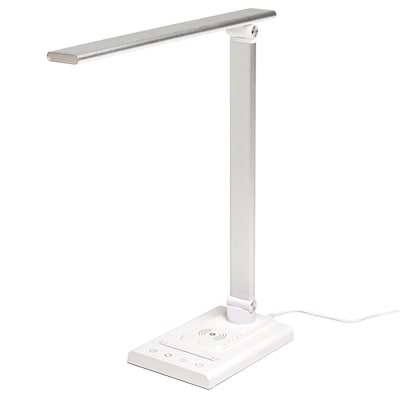 Our desk lamp features 5 color modes, adjustable brightness with a touch slider or night light mode, built-in wireless phone charger, and USB-A, and USB-C ports to keep your devices powered while you work.