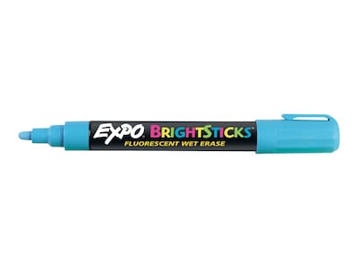 Create bright, visible text or drawings that catch people's attention in restaurants, stores, or schools with these fluorescent wet-erase markers. These quick-drying, non-toxic markers work on glass, black marker boards, and UV-light boards, wiping right off with a wet cloth. This pack includes five assorted colors of Expo BrightSticks fluorescent wet-erase markers featuring bullet nibs for bold and uniform writing.