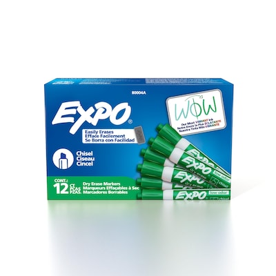 Expo low-odor chisel tip green dry-erase markers offer bold color to stand out on whiteboards, making your notes easier to read.