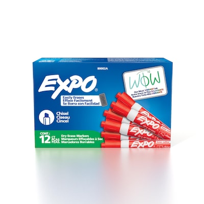 Make your whiteboard presentations stand out with this 12-pack of Expo low-odor red chisel-tip dry-erase markers.