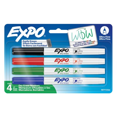 Expo Dry Erase Markers, Ultra Fine Tip, Assorted Colors, 4/Pack (1871133)