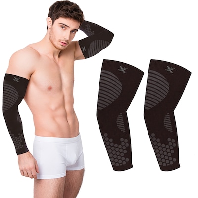 Compression fabric with enhanced power to support the muscles and tendons in the forearm.
