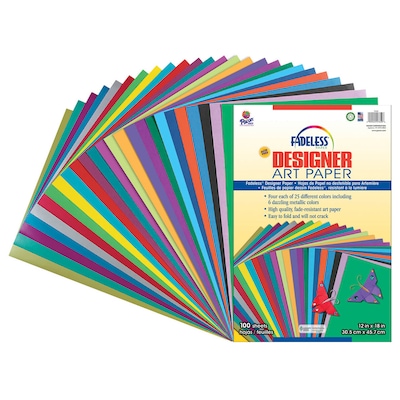 Pacon® Fadeless® Designer paper comes in assorted colors that include 4 each of 25 colors. Paper in standard, metallic and contemporary colors measures 12" x 18" and can be recycled.