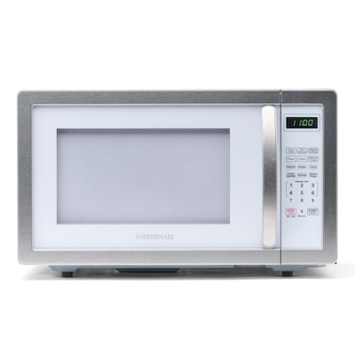 - CONVENIENT: Farberware 1.1 Cu. Ft. platinum and white microwave oven is the ideal anywhere you need it countertop microwave solution for home or office. Full-sized cooking that fits in a compact space.