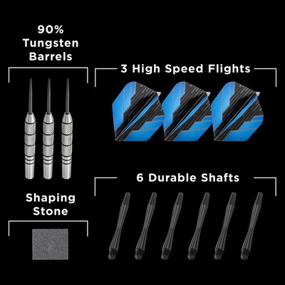 - Included - Three fully assembled steel tip darts, three extra shafts, dart mechanic repair tool, and hard-shell slim case