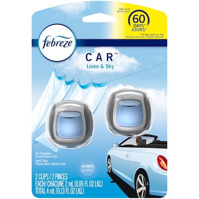 Febreze Odor-Eliminating Car Air Fresheners Vent Clip, Linen and Sky, 2/Pack