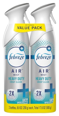 Febreze Odor-Fighting Heavy Duty Air Freshener, Crisp Clean Scent, Six 2-count packs/Carton, 8.8 oz.