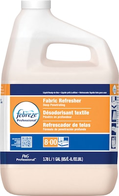 Febreze Fabric Refresher & Odor Eliminator, Fresh Clean, 1 gal is virtually safe for all fabrics, including draperies, upholstery, wall coverings, carpet, office furniture, and furniture coverings. It reduces the need for routine cleaning and deodorizing for problem odors. It also eliminates smoke, pet, food, and mold/mildew odors leaving behind nothing more than a light, fresh scent that lets you know the job is done.