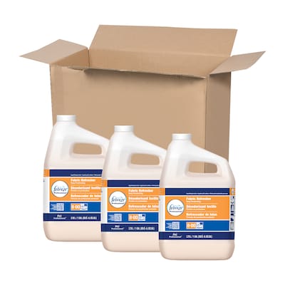 Febreze® Fabric Refresher's proprietary cleaning system goes to the source of odors and fights them. Spray directly on fabrics until slightly damp. As it dries, odors disappear. Patented binding technology locks on to odor molecules. A light, fresh scent is left behind to leave the treated area smelling fresh and clean. Safe for virtually all fabrics. Febreze Fabric Refresher & odor fighter in fresh clean scent is of 1 gal and apply directly on fabric, once fabric dries, smell is gone for good. It fights food and smoke odors, sold as 3 per case.