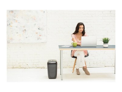 The Fellowes Powershred 60Cs is ideal for anyone looking to add a small, streamlined cross-cut shredder to an office or home workspace. This user-friendly shredder can shred up to 14 feet per minute and up to 10 sheets of paper per pass, plus heavy-duty items like staples, credit cards, and paper clips. With its 6-minute runtime and large 6-gallon bin, the Fellowes Powershred 60Cs maximizes efficiency to help you get through the job without interruption.