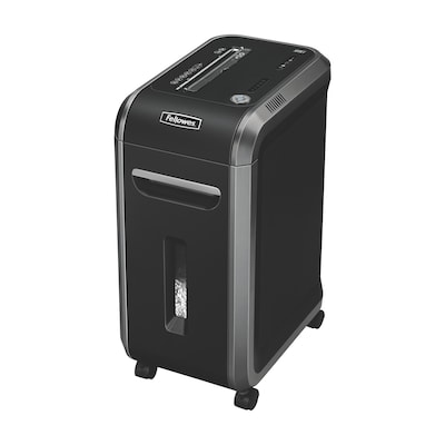Get rid of confidential documents and old forms with the Powershred 99Ci cross-cut shredder, which features a convenient 9-inch opening for easy feeding. The durable motor and sturdy steel cutters power through everything from CDs to credit cards, so your employees can protect sensitive company data. With a strip width of 5/32 inches, the cutter ensures that account information and social security numbers are safely separated.Office-Friendly Operation to Increase Productivity Keep the peace in the office with the Powershred 99Ci cross-cut shredder. It uses SilentShred Technology to reduce noise pollution, so employees can reduce waste to shreds without disturbing the person in the next cubicle. Shred 18 sheets of paper at once without getting held up by paper jams — the shredder uses Fellowes' patented three-level Jam Proof System to speed through every job. The large bin holds nine gallons, so you can make it through stacks of documents before emptying.