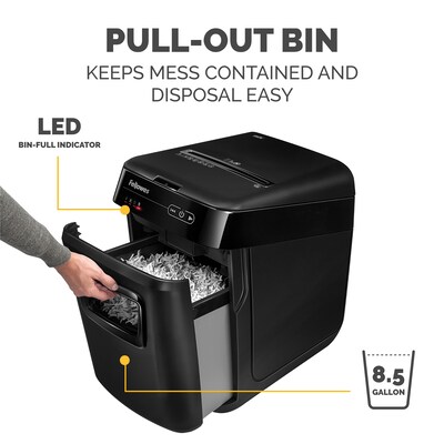 Enhance productivity and data security with the fast hands-free performance of this Fellowes AutoMax 150-sheet shredder.