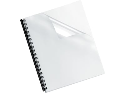 Protect documents from spills and tears without obscuring the title page by using these binding covers. These letter-sized Fellowes binding covers are made with heavy-gauge translucent PVC and are compatible with most binding systems.