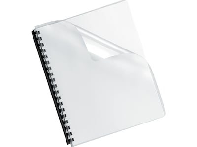 Showcase custom title pages with these clear plastic binding covers. Made for use with most comb-, wire- and coil-binding machines, these pre-punched covers come in a pack of 100 for processing a variety of small or large projects. These durable Fellowes Crystals binding covers are oversized to fit letter-size documents neatly without any overhang and protect them from spills, tears, or creases.