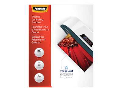 Prevent papers from getting bent or damaged with this 100-pack of Fellowes ImageLast 5-mil thermal laminating pouches.