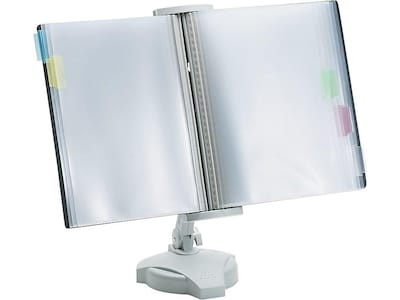 Access contracts, reports and other documents easily with this reference rack. With an adjustable format, this desktop rack makes it easy to accommodate preferred heights and angles, offering increased viewing comfort. This Fellowes platinum reference rack includes 10 clear pockets with a 20-sheet capacity and index tabs, so you can locate specific forms quickly, and the mountable design can be utilized to minimize space usage.