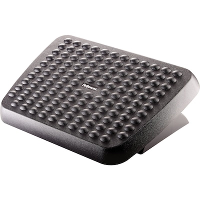Enjoy comfort throughout the day with this adjustable footrest that customizes to each person's specific preferences. This footrest helps encourage proper circulation with its tilt and lock design for optimal foot placement. The textured bumps of this footrest help promote stress relief through concentrating on specific pressure points. This Fellowes footrest helps individuals feel less tightness and strain in their feet. Fellowes Standard Footrest offers dual-position height adjustment with a Free-Floating platform that encourages lower leg movement to help reduce fatigue. A textured surface massages the soles of your feet for stress reduction. Product contains 89% post-consumer recycled materials.