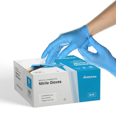 Fifth Pulse Powder Free Nitrile Exam Gloves, Latex Free, Small, Blue, 50 Gloves/Box (FMN100170)