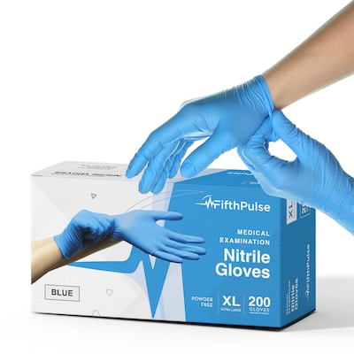 Fifth Pulse Powder Free Nitrile Exam Gloves, Latex Free, XL, Blue, 200 Gloves/Box (FMN100412)