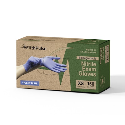 FifthPulse Biodegradable Powder Free Nitrile Exam Gloves, Latex Free, XS, Violet Blue, 150 Gloves/Box (FMN100543)