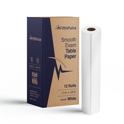 FifthPulse Exam Table Paper, 17 in. x 125 ft., White, 12 Rolls (FMN100721)