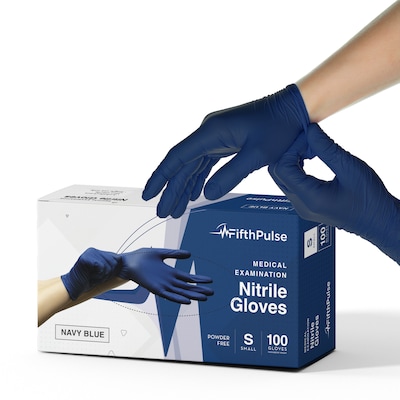 FifthPulse Powder Free Nitrile Gloves, Latex Free, Small, Navy Blue, 100/Box (FMN100210)