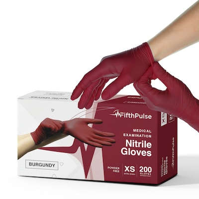 FifthPulse Powder Free Nitrile Gloves, Latex Free, X-Small, Burgundy, 200/Box (FMN100423)