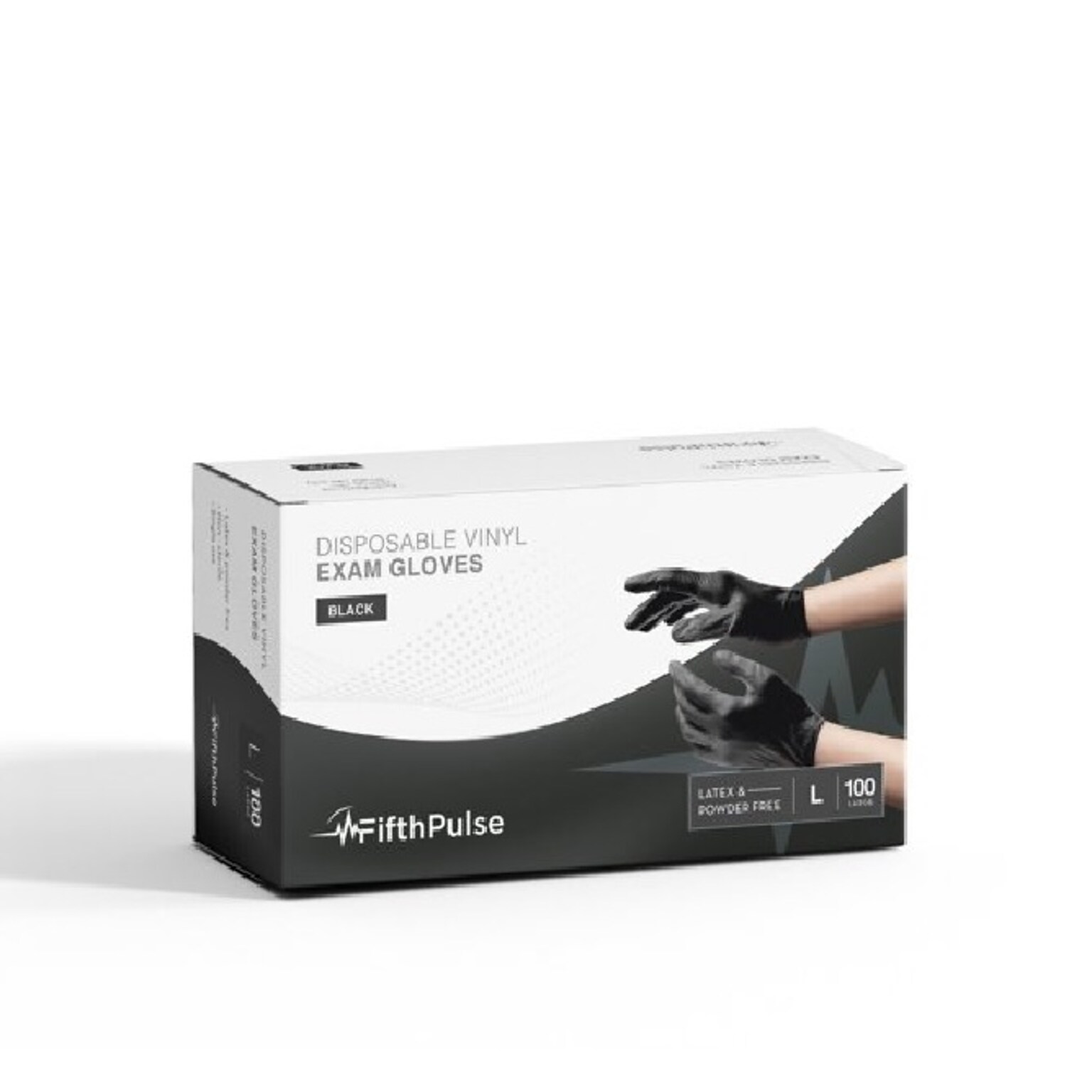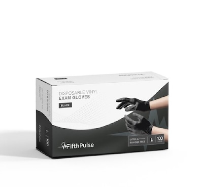 FifthPulse Powder Free Vinyl Exam Gloves, Latex Free, Large, Black, 100/Box (FMN100035)