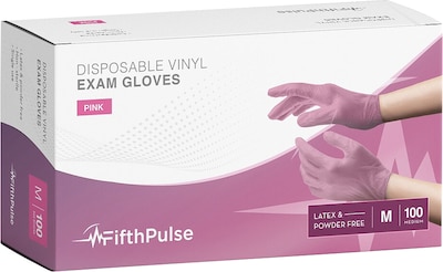 FifthPulse Powder Free Vinyl Exam Gloves, Latex Free, Medium, Pink, 100/Box (FMN100042)
