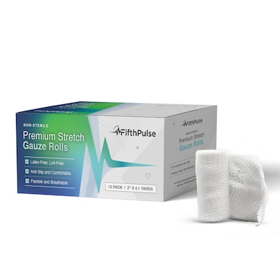 FifthPulse Stretch Gauze Bandages - Soft, lint-free, and breathable, these gauze rolls are highly absorbent and are great for wounds and bruises. Made from high-quality materials, our gauze bandages are latex-free. Individually wrapped.