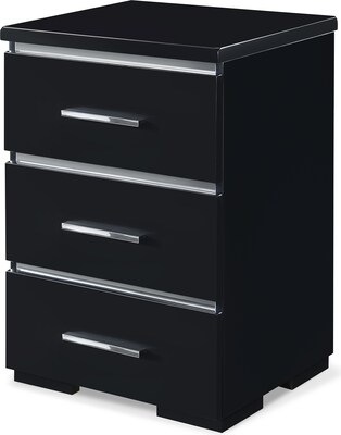 This three drawer nightstand provides valuable bedroom storage in a modern design that will enhance the look of any sleeping space. The large drawers provide plenty of space for storage while maintaining a small profile that is appropriate for bedside furniture. The modern design of this nightstand is highlighted by the polished mirrored details between the drawers and the sleek chrome finished drawer pulls. If your design style leans toward modern, contemporary or casual, this is the perfect nightstand for you.