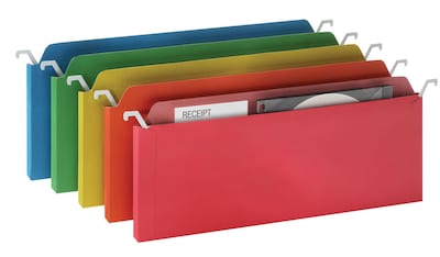 Find It® Tabview mini hanging file folder in assorted colors is designed to keep track of coupons or receipts in a order. File folder measuring 4" x 0.01" x 11" comes in patented design includes lowered top rail edge, sold as 6 per pack.
