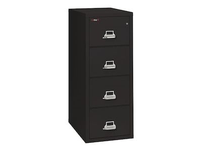 Use this heavily insulated file cabinet to organize letter-sized document folders. The inter-drawer insulation of this cabinet keeps files safe in the event of a fire, and the high-security key lock ensures that documents are for your eyes only. This vertical file cabinet comes equipped with water-resistant technology, which prevents water from damaging files. With four roomy drawers, this FireKing file cabinet offers enough space to store essential papers for optimum organization.