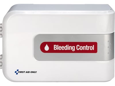 First Aid Only bleeding control cabinet of four kits empowers a first responder bystander with the right tools to stop a life-threatening blood loss before professional help arrives. The bleeding control cabinet with four kits meets the Texas mandate to have kits in all schools. The kit provides all the tools required to handle serious multiple-wound limb or torso bleeding wounds.