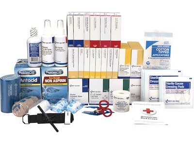 - 687 pieces of first aid supplies to treat minor wounds, scrapes, burns, aches and pains