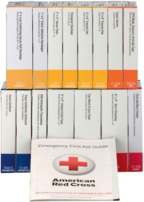 First Aid Only First Aid Kit Refill helps serve your everyday needs and helps you through simple bruises and cuts you may sustain on an average work day. This 84-piece, 25-person, ANSI compliant first aid refill kit holds all 18 ANSI 2015 required items. It is designed for use in small offices, vehicles and work sites.