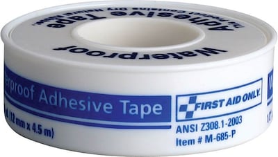 First Aid Only Tape is made of water-proof material and measures 1" x 5 yds. Tape comes on a plastic spool.